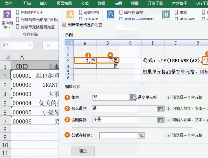 3.单击条件判断区域中的判断单元格是否为空的操作