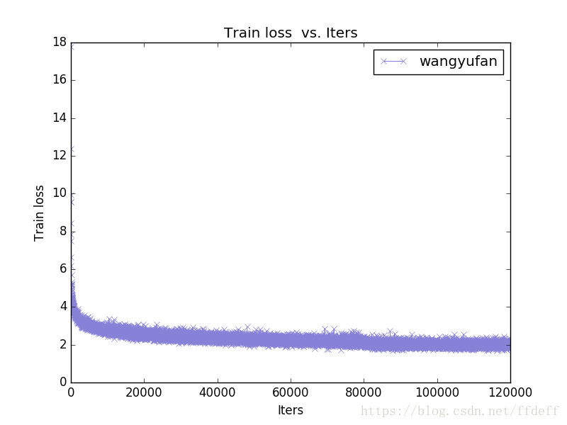运行成功后png图片被保持再caffe目录下,下图分别为迭代1200次和120000次的loss曲线,可以看出随着训练次数迭代观察到梯度下降
