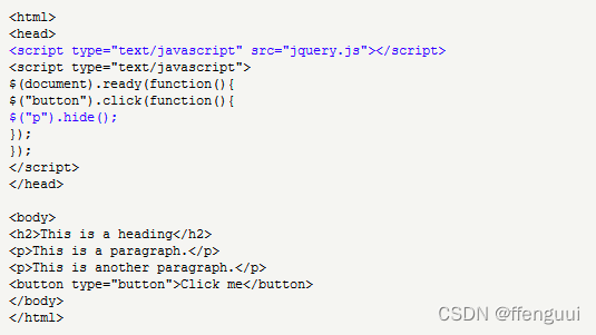下面的例子演示了JavaScript的hide()函数,隐藏了HTML文档中所有的<p>元素。