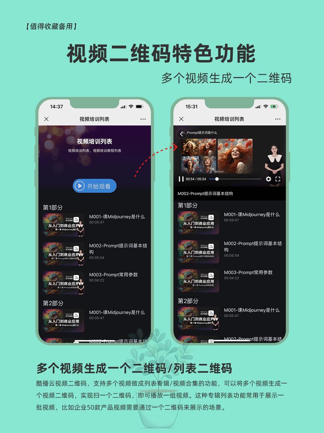 将视频上传的自己企业官网平台,获取视频观看页面地址,然后通过程序将地址生成二维码,实现扫码观看。