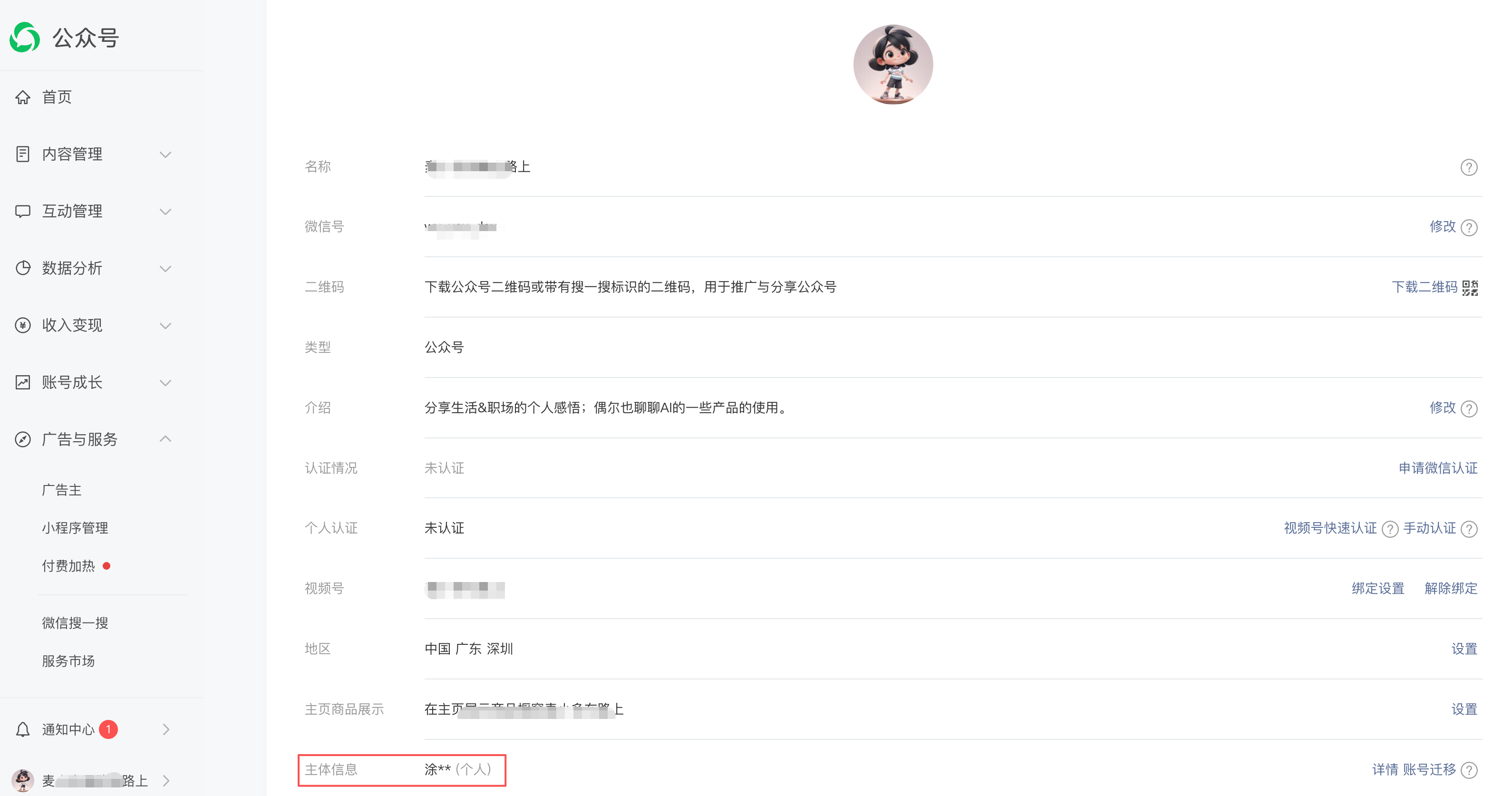 - 如何判断自己的账号是否完成了实名?可前往「微信公众平台 - 账号详情 - 主体信息」,如果显示了管理员的姓名,则是完成了实名认证。如下截图: