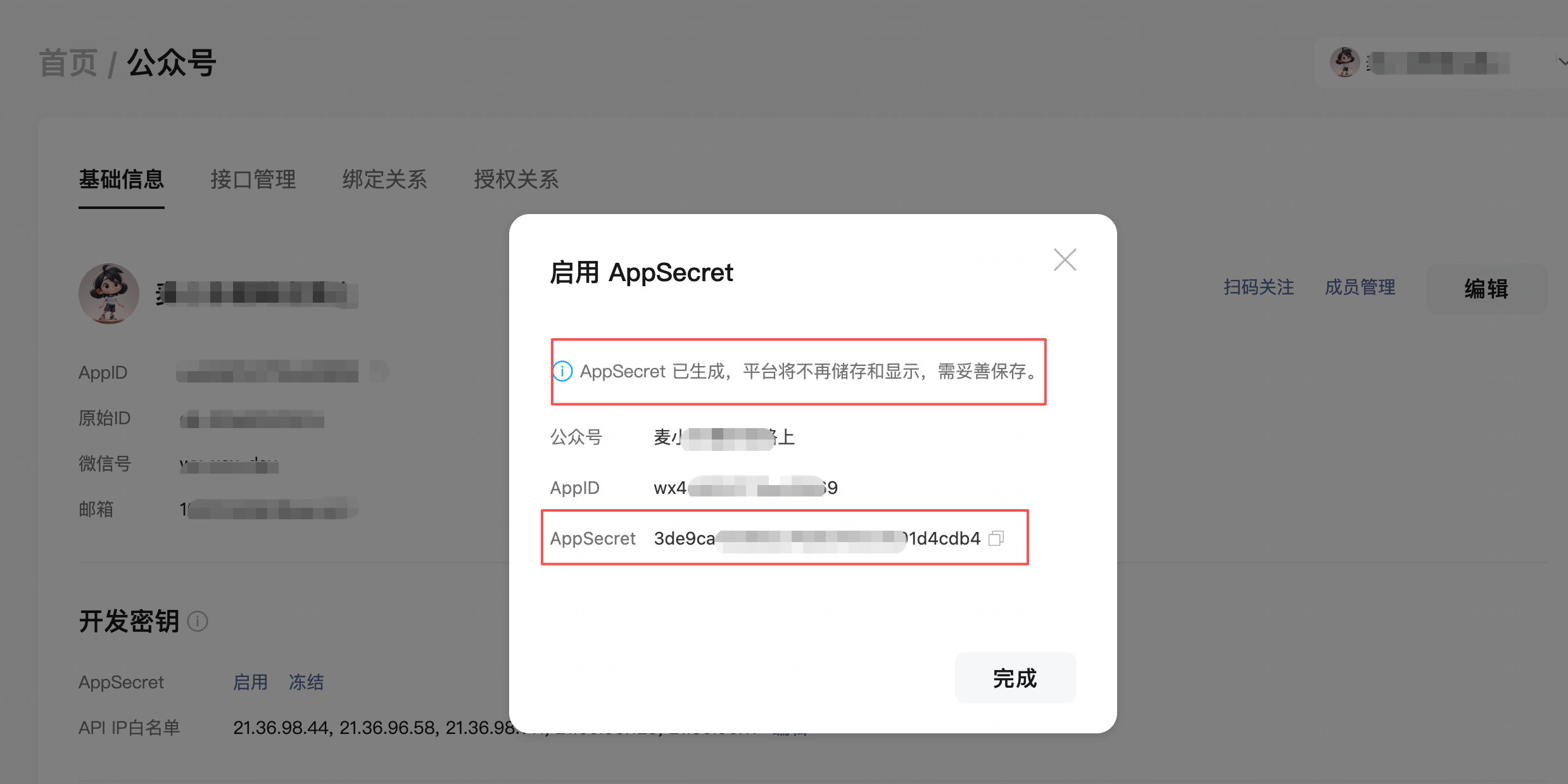 - 平台并不保存开发者的 AppSecret ,因此需要开发者妥善保存。即,如果不记得了,则需要重置。
