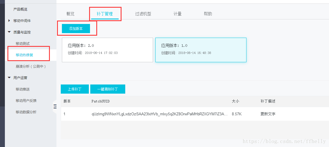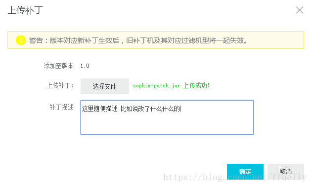 添加完应用版本后 开始上传补丁(sophix-patch.jar)