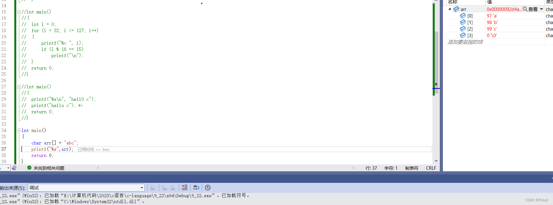 那么我们如果在arr1后面加上\0会出现什么结果呢?并且看一下"abc\0efg"中\0会结束字符串吗?我们来试验一下;