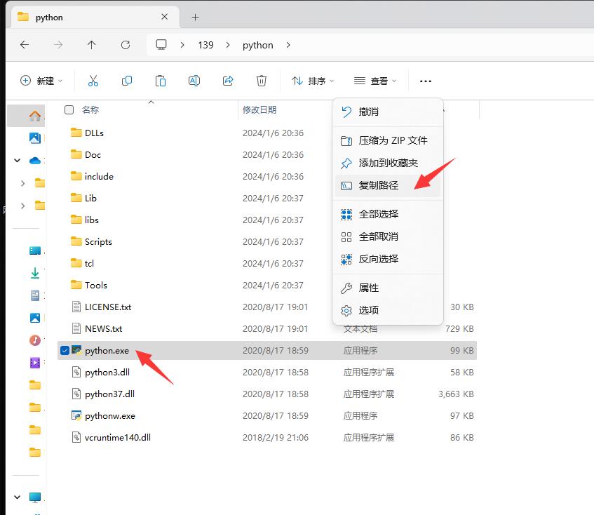 通过复制python文件夹的python.exe的绝对路径即可运行这个环境,无需自己再另外安装环境,下载即可使用。