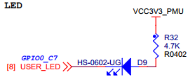 我们先根据原理图找到对应的led,发现是由gpio0_c7驱动的,低电平则点亮,反之。