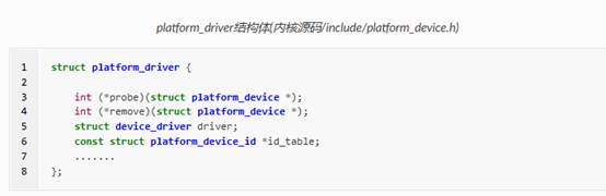 内核中使用platform_driver结构体来描述平台驱动,结构体原型如下所示: