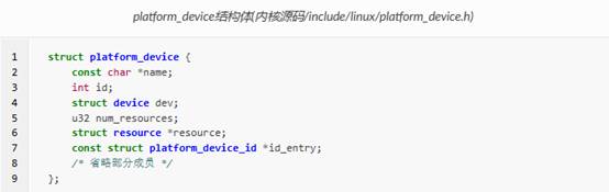 内核使用platform_device结构体来描述平台设备,结构体原型如下: