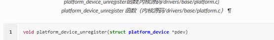 同样,当需要注销、移除某个平台设备时,我们需要使用platform_device_unregister函数,来通知平台设备总线去移除该设备。