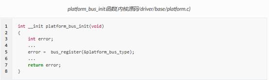 内核用platform_bus_type来描述平台总线,该总线在linux内核启动的时候自动进行注册。