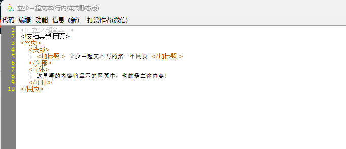 提示:应该把 <头部> 标签放在文档的开始处,紧跟在 <网页> 后面,并处于 <主体> 标签或 <框架集> 标签之前。