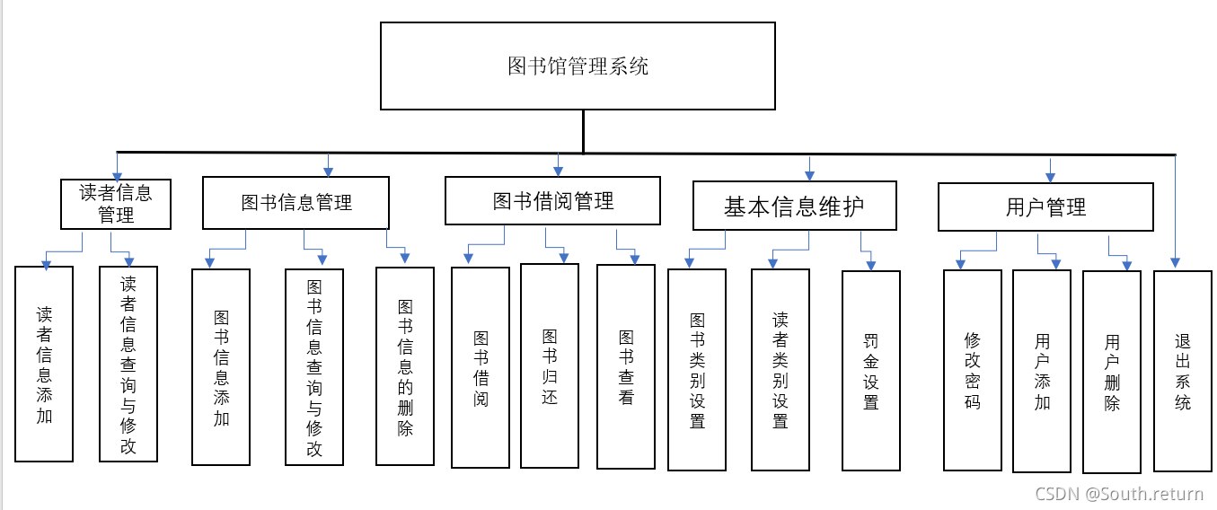 然后再分析接下来的几个模块,还是根据先易后难的原则,博主选择设计的顺序是读者信息管理、图书信息管理、基本信息维护。