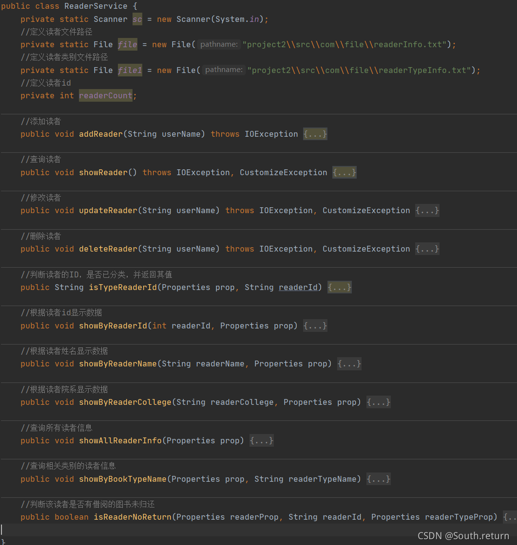 设计思路:读者id作为键,其他属性作为值保存到集合然后存储到文件。该部分的设计也就是一些增删改查,但要注意的是各个限制条件一定要思考的全面(比如修改读者信息时,首先进行判断是否存在读者信息,其次判断用户输入的id是否合理,然后再看该读者是否借书还未归还),以及判断顺序(也就是以上三种判断的顺序,很显然首先应该判断的就是是否存在读者信息,然而如果首先判断用户输入的id就不太合理)