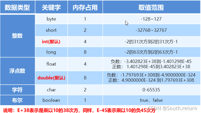 含义:每一种数据都有明确的数据类型,不同的数据类型分配不同的内存空间,表示的数据大小也不一样 分类 基本数据类型 数值型 整数(byte,short,int,long)