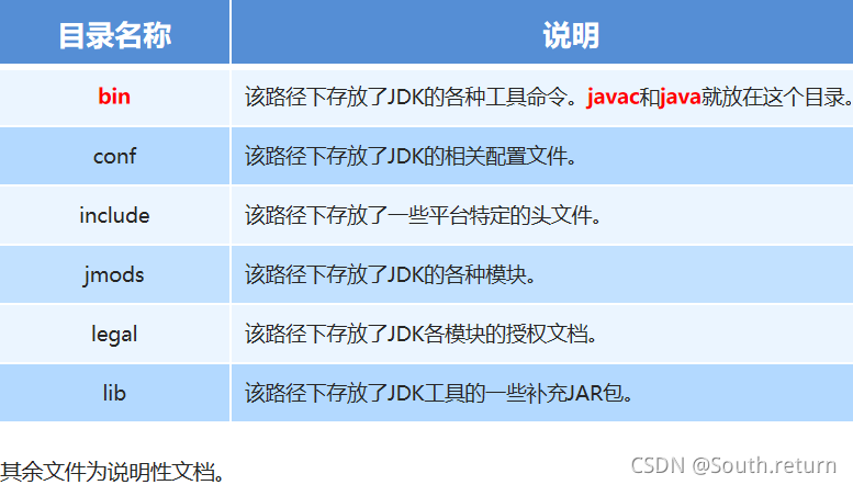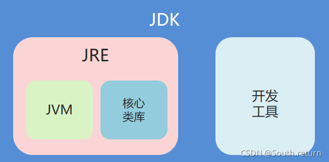 | JRE (Java Runtime Environment) | 概述:Java程序的运行时环境,包含JVM和运行时所需要的核心类库。 我们想要运行一个已有的Java程序,只需要安装JRE即可。 |