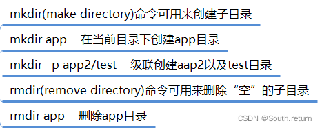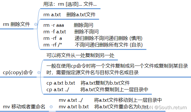 | 权限管理 | chmod 变更文件或目录的权限 chmod 755 a.txt :快速变更文件的权限 chmod u=rwx,g=rx,o=rx a.txt:变更文件的权限 |