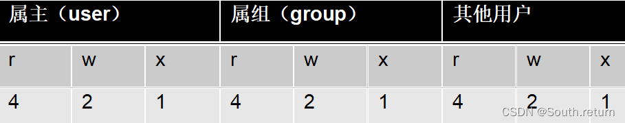 r (read):对文件是指可读取内容 对目录是可以ls w (write):对文件是指可修改文件内容,对目录 是指可以在其中创建或删除子节点(目录或文件) x (excute):对文件是指是否可以运行这个文件,对目录是指是否可以cd进入这个目录 | |