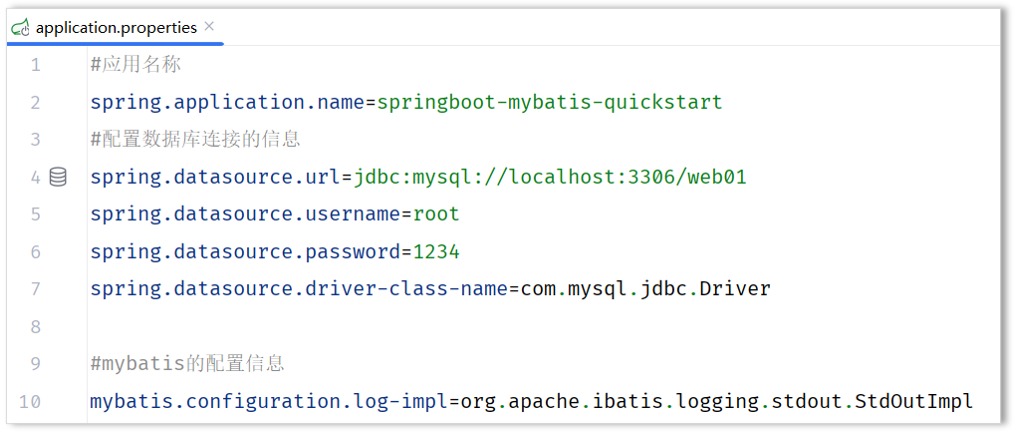 熟悉完了yml文件的基本语法后,我们修改下之前案例中使用的配置文件,变更为application.yml配置方式: