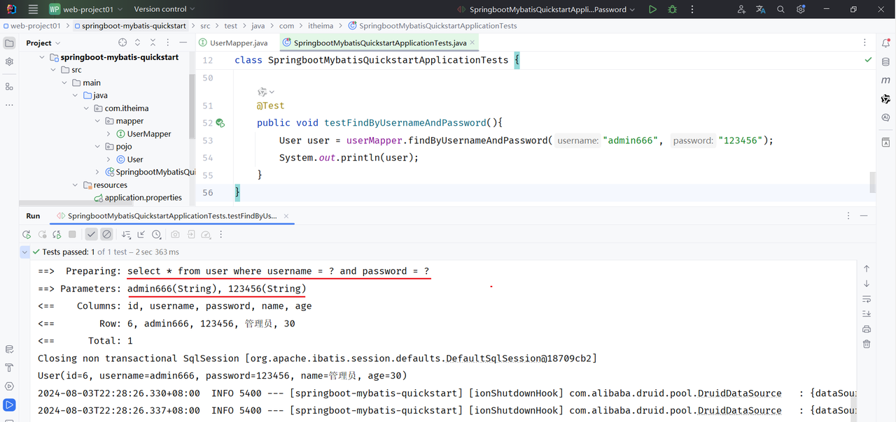 User user = userMapper.findByUsernameAndPassword("admin666", "123456");