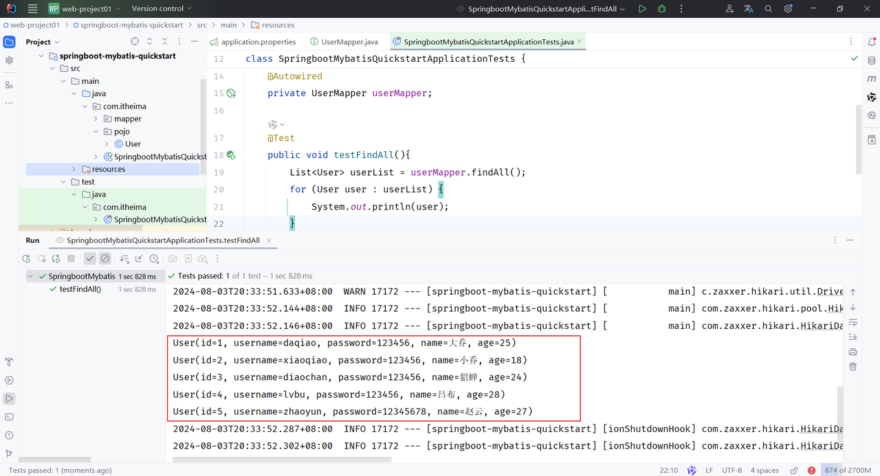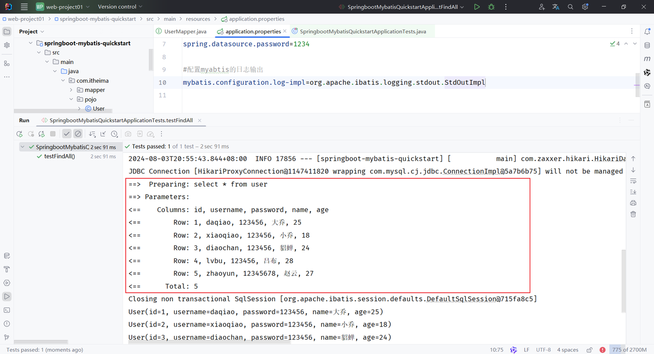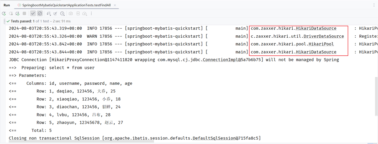 运行测试类,执行结果:
