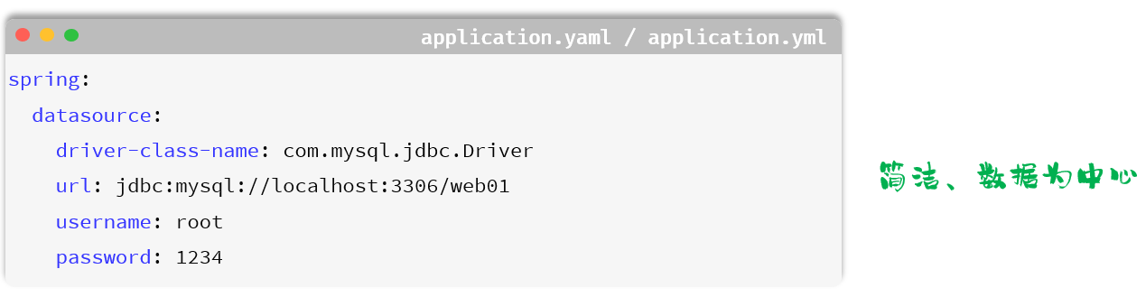 在项目开发中,我们推荐使用application.yml配置文件来配置信息,简洁、明了、以数据为中心。