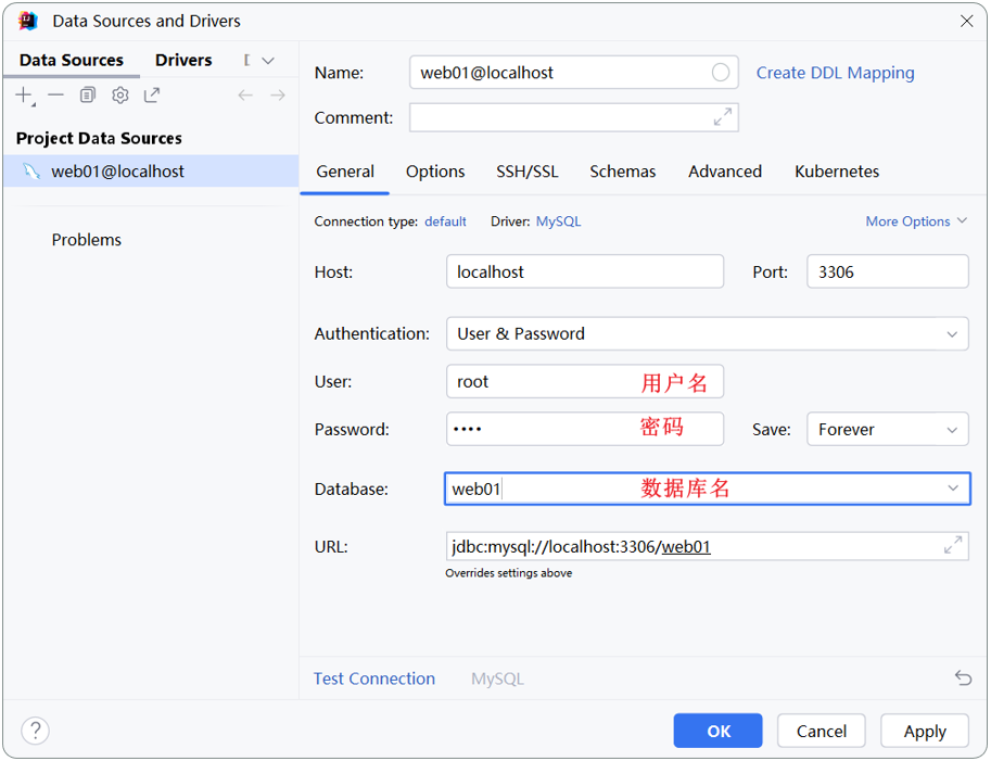 url: jdbc:mysql://localhost:3306/web01
