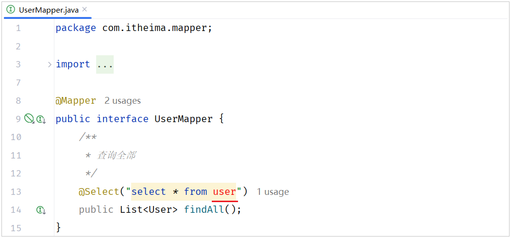 <mapper namespace="com.itheima.mapper.UserMapper">