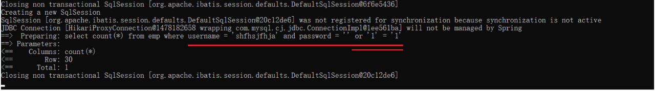 select * from user where username = 'linchong' and password = '123456';