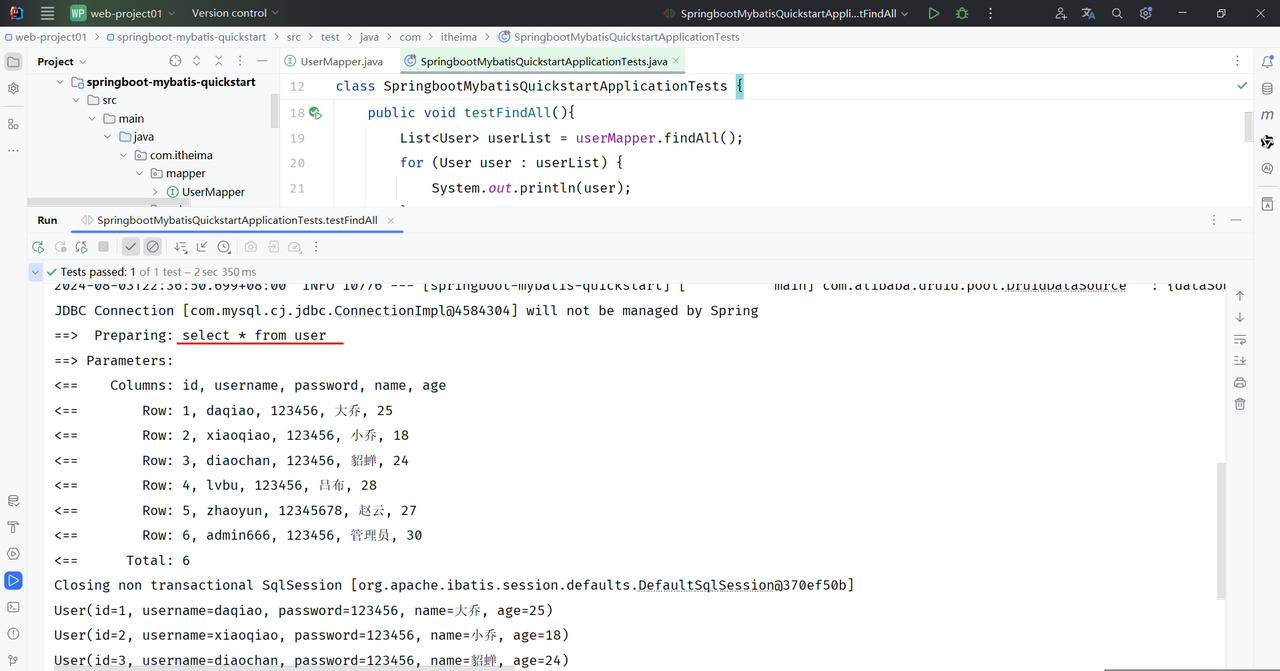 <select id="findAll" resultType="com.itheima.pojo.User">