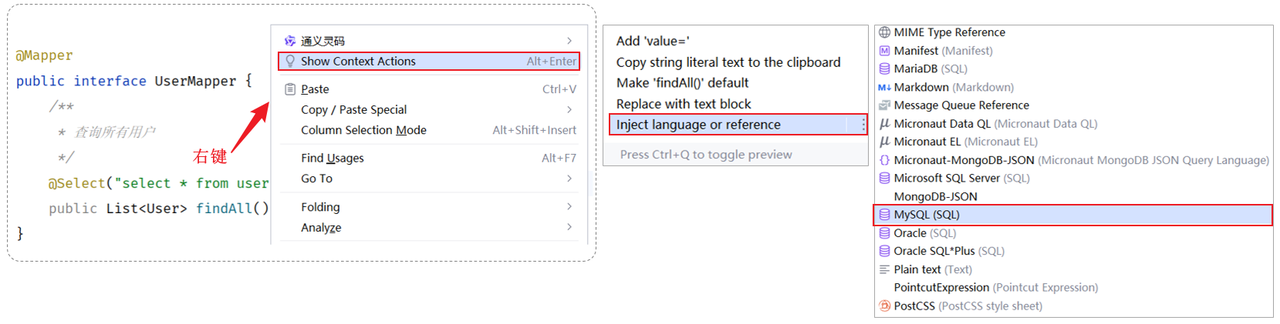注意:一个接口方法对应的SQL语句,要么使用注解配置,要么使用XML配置,切不可同时配置。