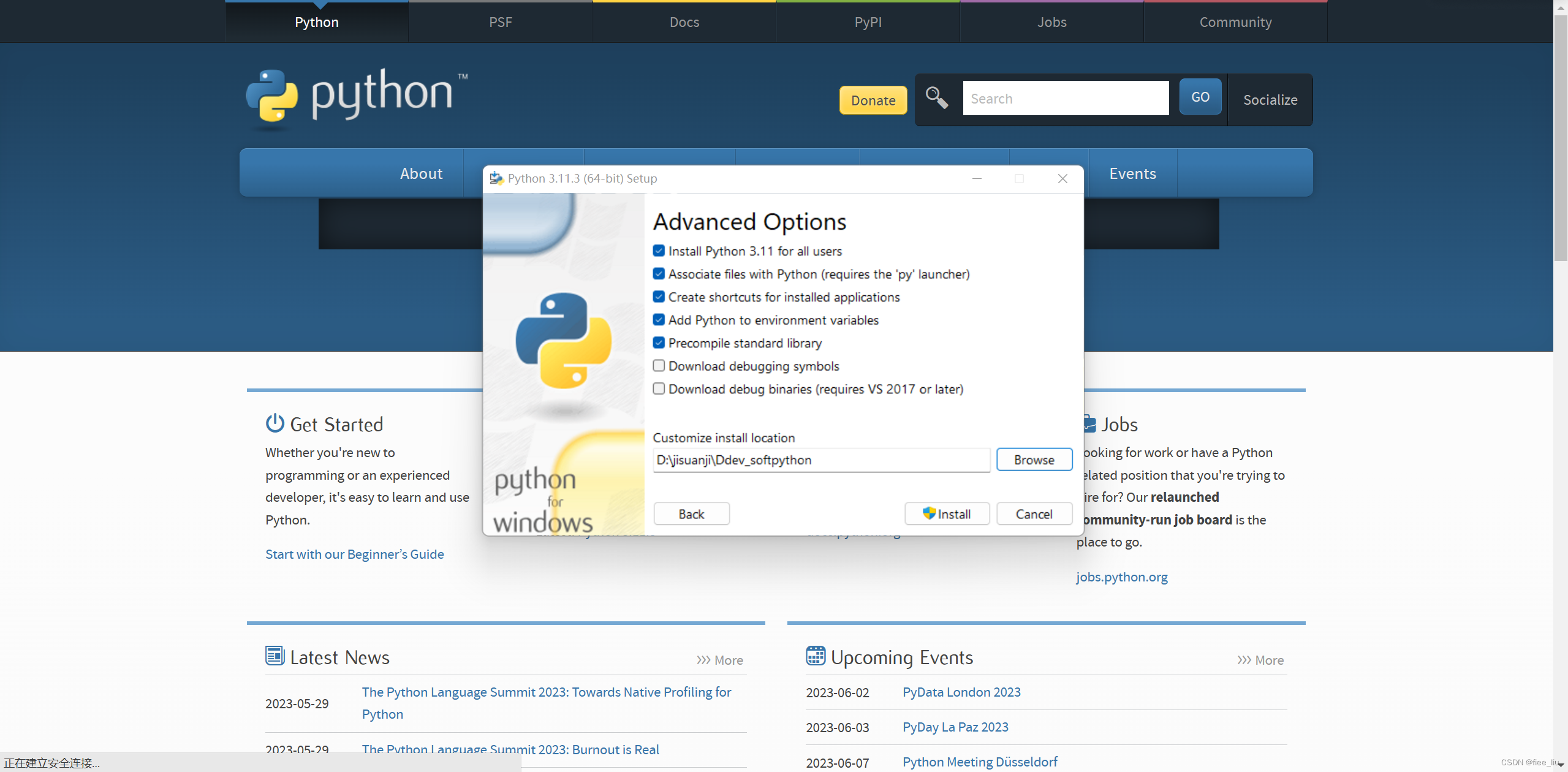 本文介绍了如何访问Python官网下载最新版本3.11.3,然后进行安装,并通过在命令提示符中运行Python来验证安装成功。用户可以在Python交互式环境中输入代码并立即看到执行结果,使用exit()退出环境或关闭窗口。