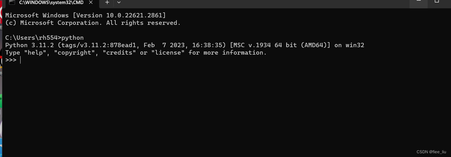 安装成功后,打开命令提示符窗口(win+R,在输入cmd回车),敲入python后