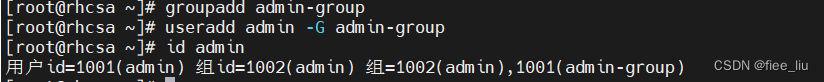 5、创建组admin-group,添加用户admin属于admin-group组(groupadd,useradd -g -G)
