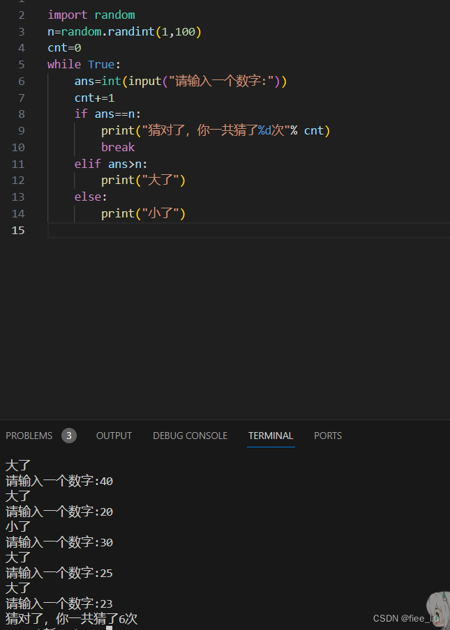 10.猜数字游戏(使用random模块完成) 电脑随机一个范围内的数,用户输入数据判断,