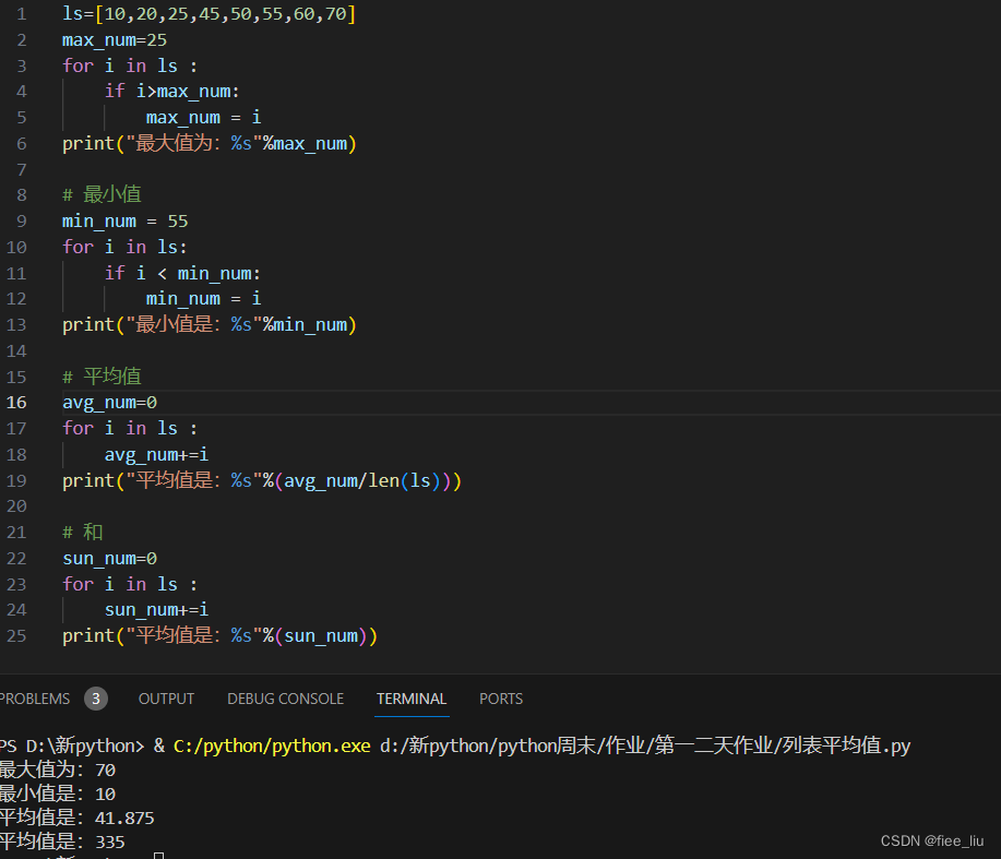 给定一个列表,求最大值(不能使用系统api),求最小值,求平均值、求和