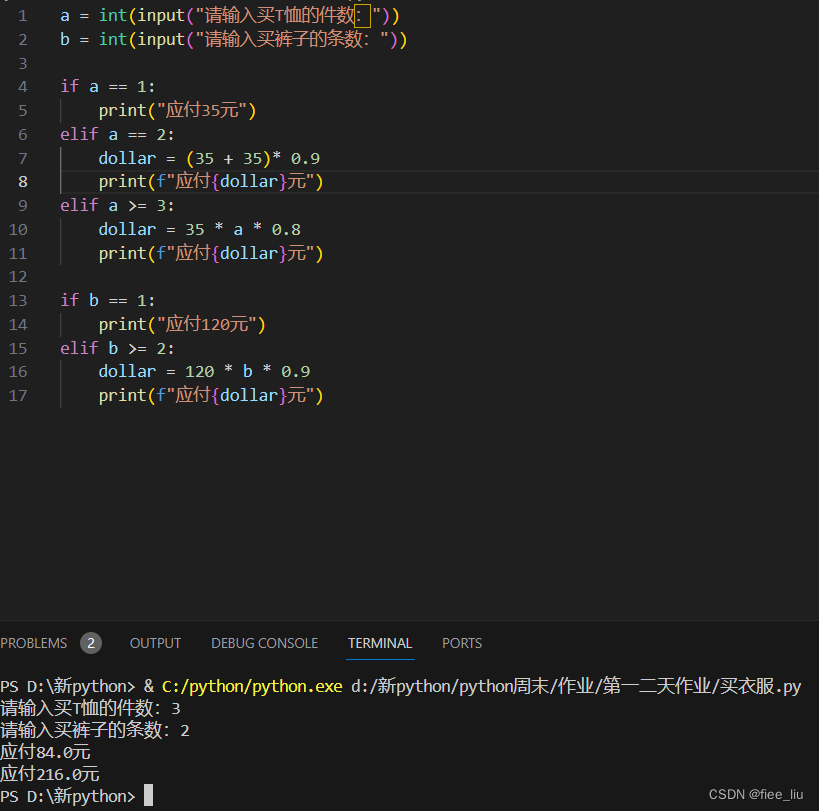 8.某商店T恤的价格为35元/件(2件9折,3件以上8折),裤子的价格为120 元/条(2条以上9折).小明在该店买了3件T恤和2条裤子,请计算并显示小明应该付多少钱?