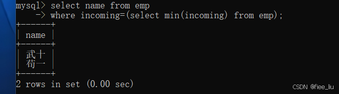 2.求财务部门最低工资的员工姓名