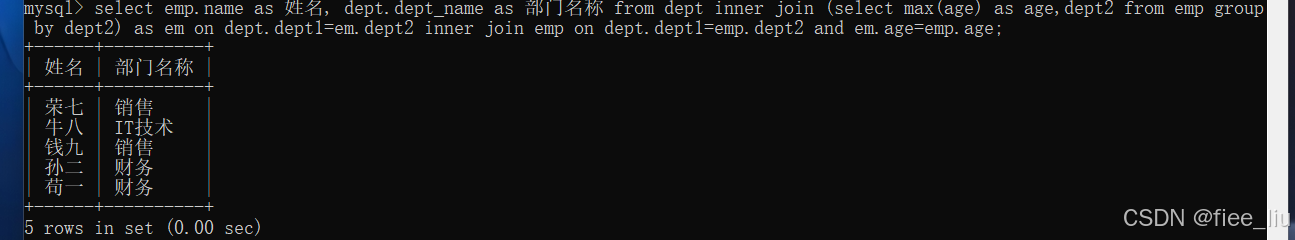 1.找出销售部门中年纪最大的员工的姓名
