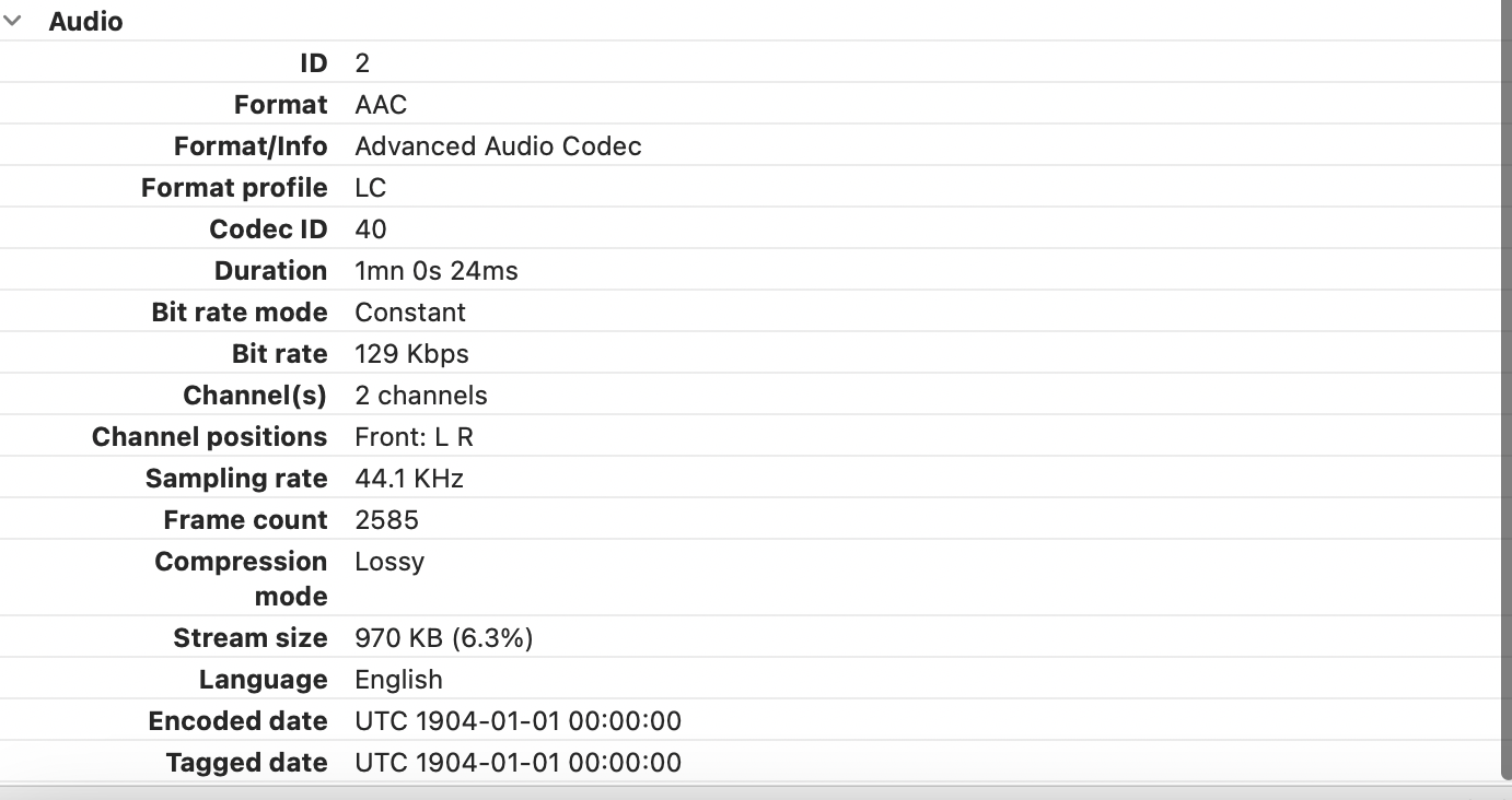 Channel | 声道数 | 2channels | 双声道(音频才有) |