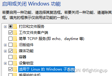 启动windows上的linux子系统功能