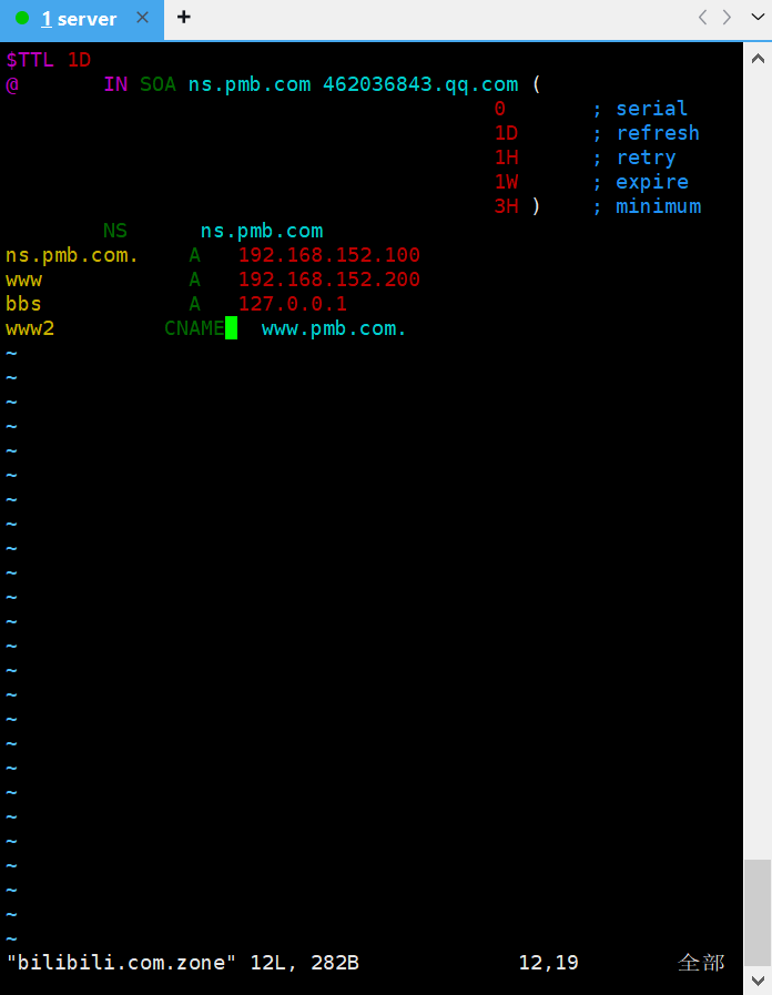 # 4.创建并编辑/var/named/bilibili.com.zone文件