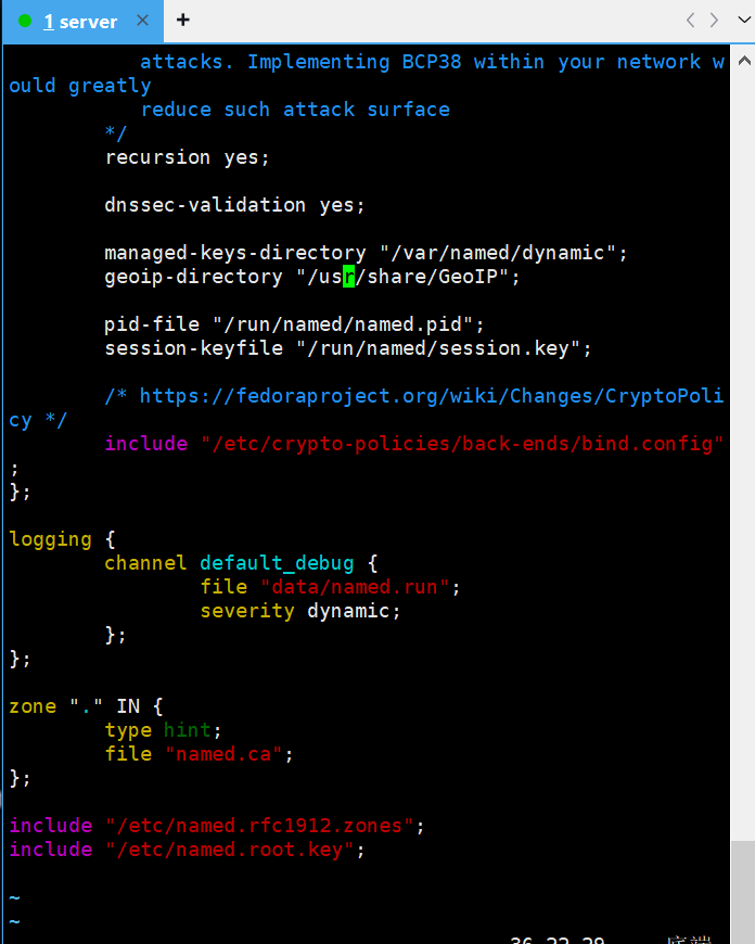 directory "/var/named";# 重要,数据目录,关于正向解析、反向解析、主从的区域配置文件都在该目录
