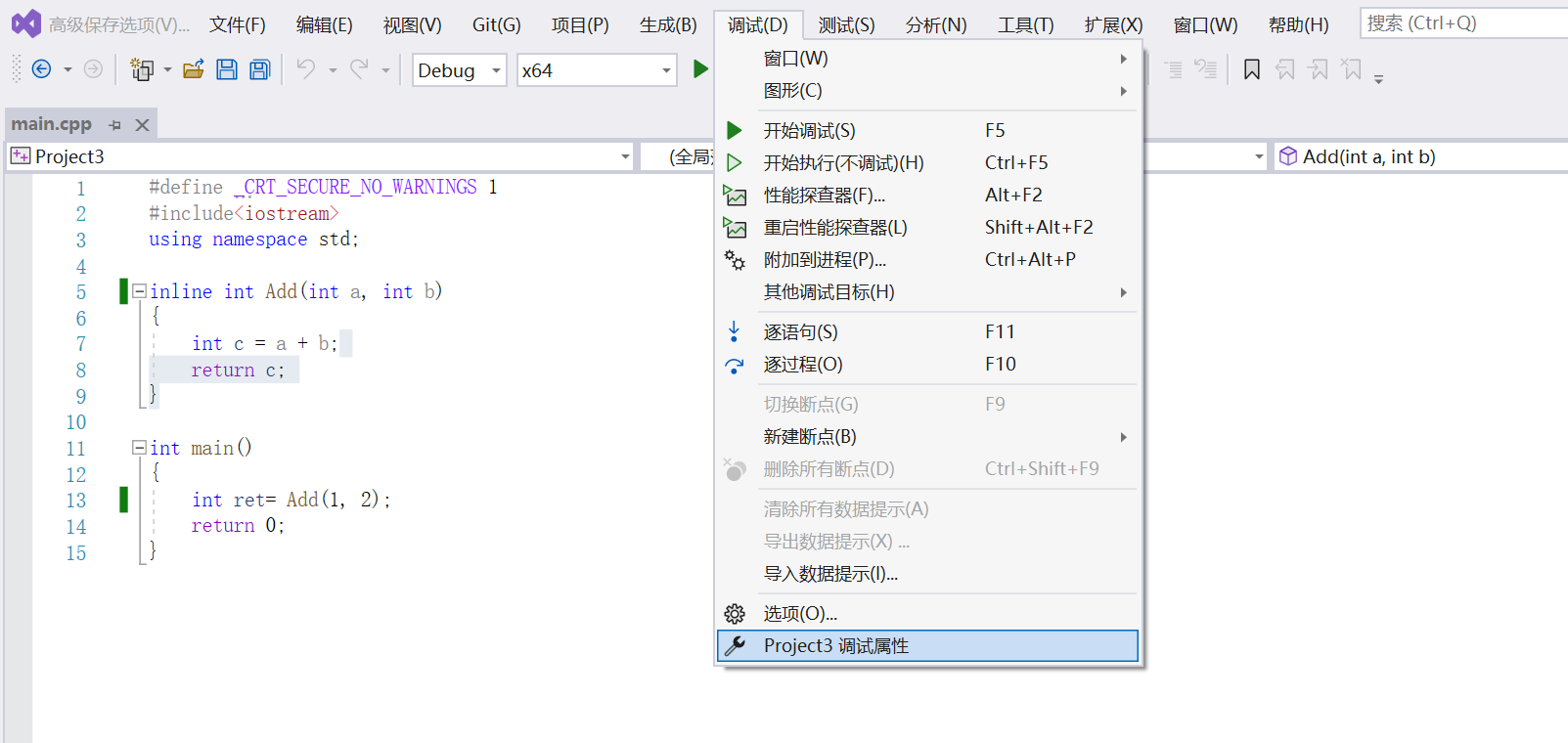 1. 在release模式下,查看编译器生成的汇编代码中是否存在call Add
