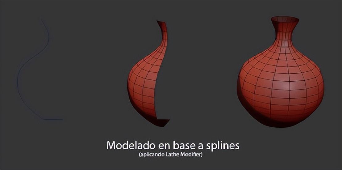 创建样条线,然后使用“车削”修改器旋转该样条线以生成体积。