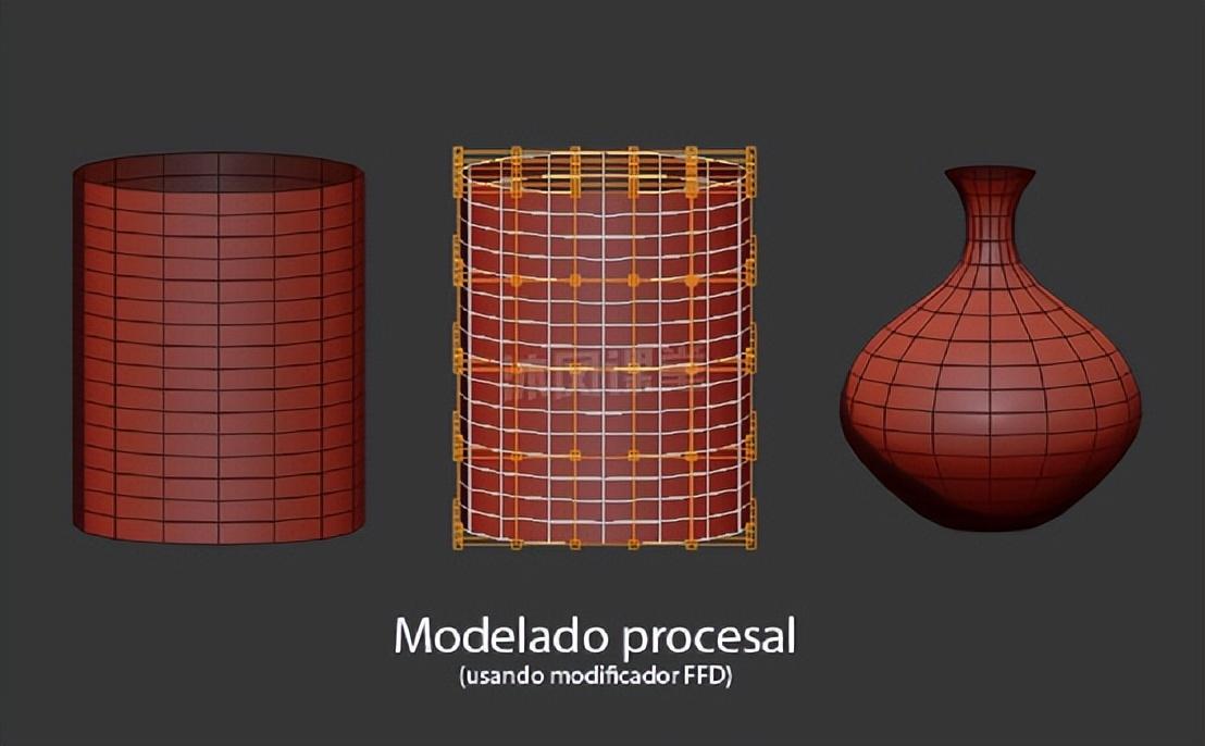同样是使用修改器修改的圆柱体,在本例中是FFD修改器,它允许基于点阵变形几何体。