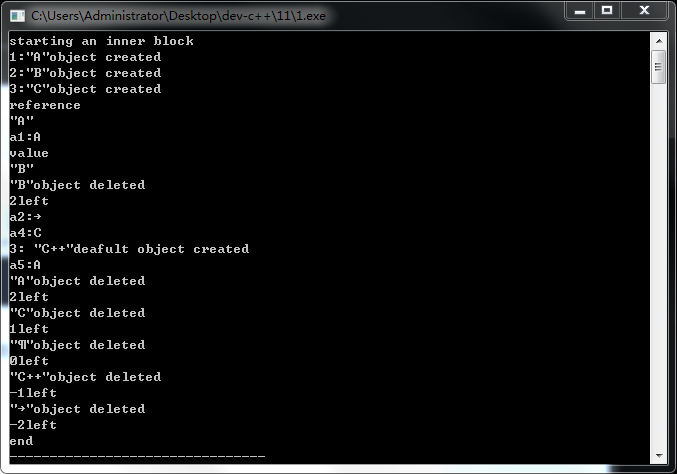 同样,析构函数也同样,每当销毁一个对象,就会自动减1
