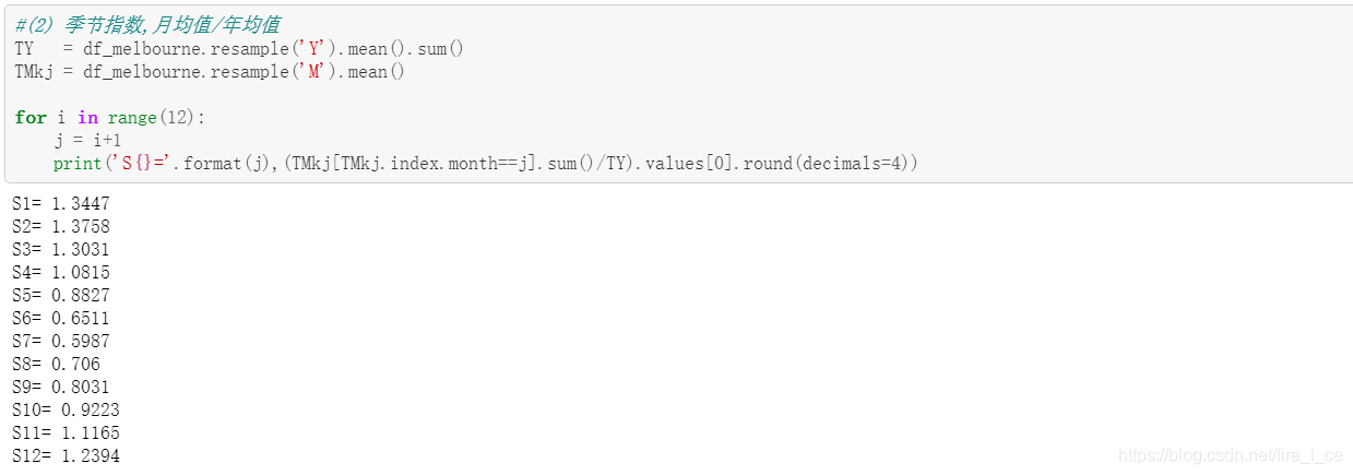 (2) 季节指数是一种对于周期性变化序列的特征刻画。记数据集中第 k 年 平均最低气温为 TYk(k = 1, ..., 10),第 k 年第 j 个月平均最低气温为 。请按照如上定义,计算 12 个 ∑ TMkj TM (j = 1, ..., 12),定义 S = k kj j 月的季节指数 Sj。