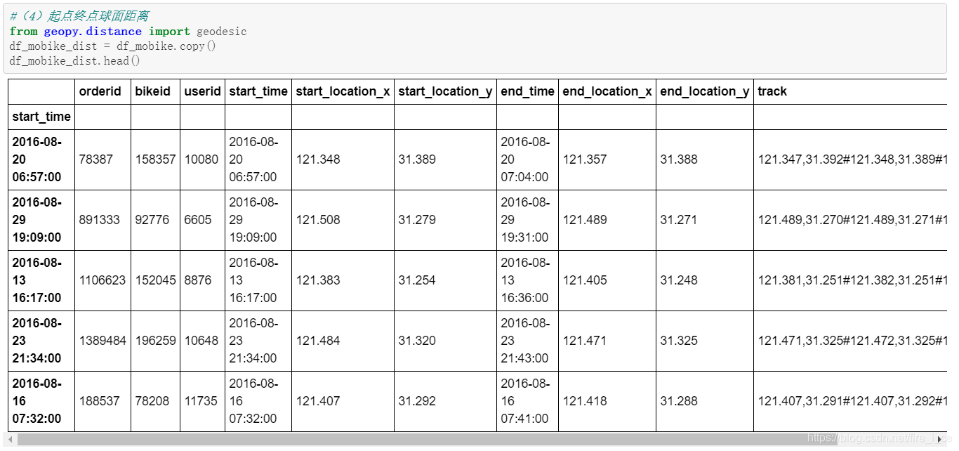(4) 请自行搜索相关代码或调用库,计算每条记录起点到终点的球面距离。