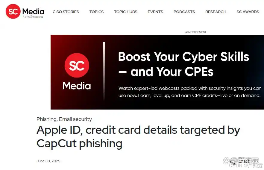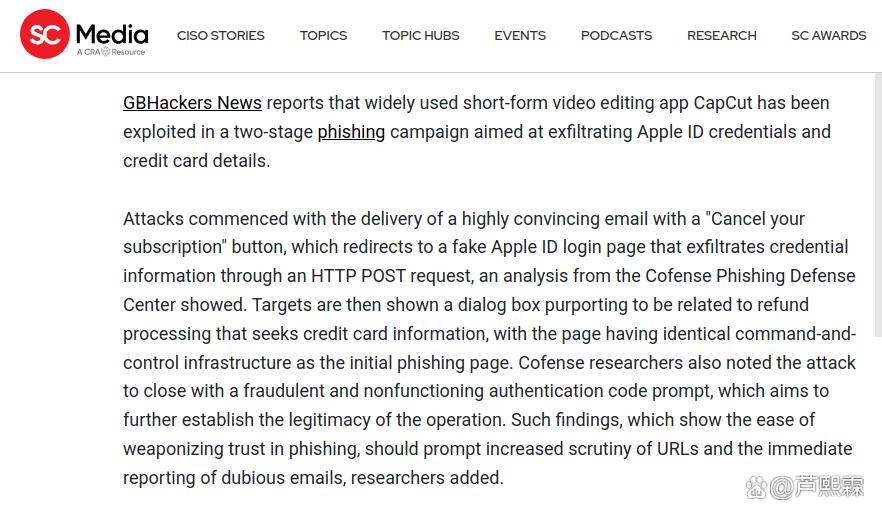 关键词:CapCut;钓鱼攻击;Apple ID;信用卡信息窃取;品牌仿冒;移动安全;前端欺骗