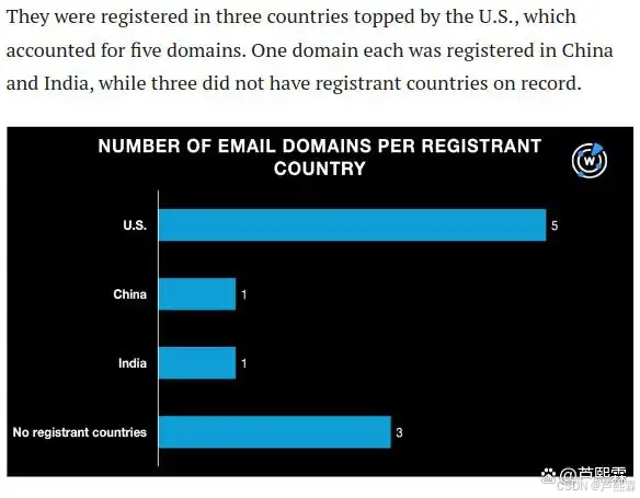 进一步查询IoC域名的历史WHOIS记录,提取出10个曾出现的联系邮箱。经人工研判,其中6个为Gmail、Yahoo等公共邮箱(如 user123@gmail.com),其余4个为一次性临时邮箱。将6个公共邮箱作为查询条件,再次调用Reverse WHOIS API,发现其共关联7,437个域名。值得注意的是,其中一个邮箱关联域名超10,000个,疑似专业域名投资者(domainer),故予以排除。剩余5个邮箱关联的7,437域名中,经威胁情报平台交叉验证,267个已被标记为恶意,主要涉及钓鱼、恶意软件分发等行为。